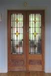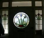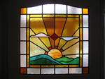 1930s and 1940s stained glass was heavily influenced by the preceding styles but one feature more unique to the era was the popularity of pictorial panels like tf07 with rural or sea scenes.