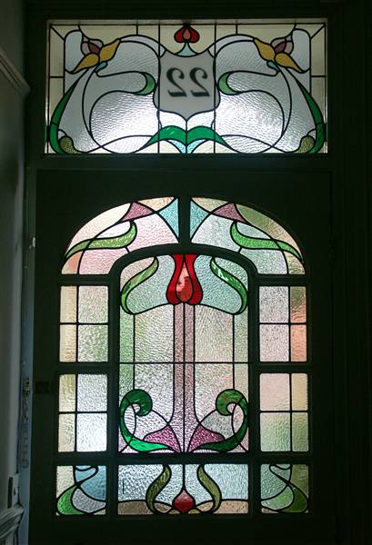 | This beautiful door set contains original door panels around the central panel, a new central door panel and new fanlight designed to match the street style. It shows to great effect the classic whiplash curve that distinguished the Art Nouveau style. The builder Ted Christmas built this house, he started off as a carpenter then moved into the building business, his houses had a reputation for fine quality work. For more information on Ted Christmas see this article by local historian Stephen Grindlay. Ref: an06 | ||