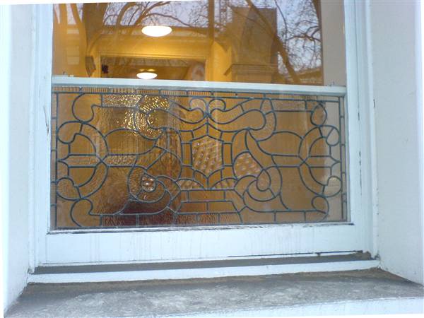 | This photo is not work undertaken but a screen panel in central London that has the classic Edwardian look. It shows how different textured clear glasses can be used to highlight features. Ref: ed01 | ||