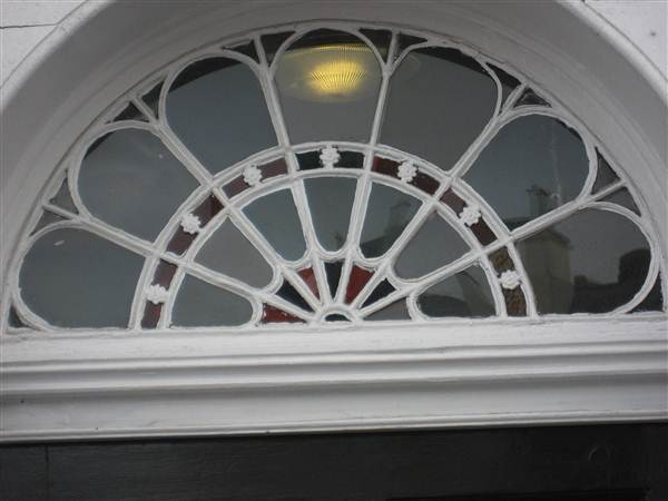 | Original fanlight with cast iron or lead fascia work and coloured glass inserts. Ref: ge23a | ||