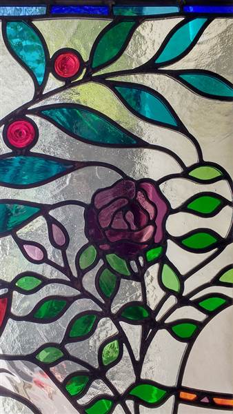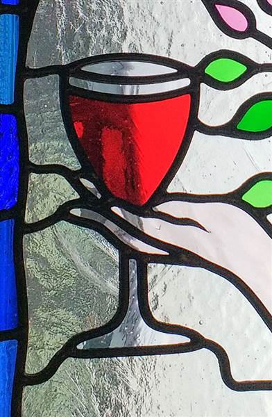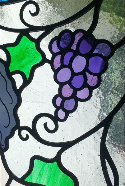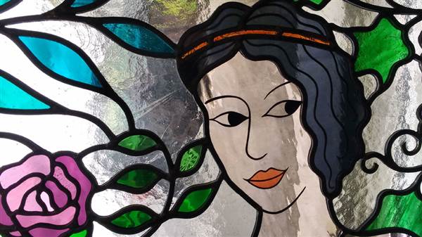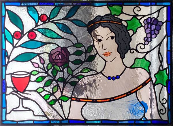 | The Goddess of Wine invites you to join her! The twinkle in her eyes and enigmatic smile is courtesy of Flora Jamieson Stained Glass. Ref: md26a | ||