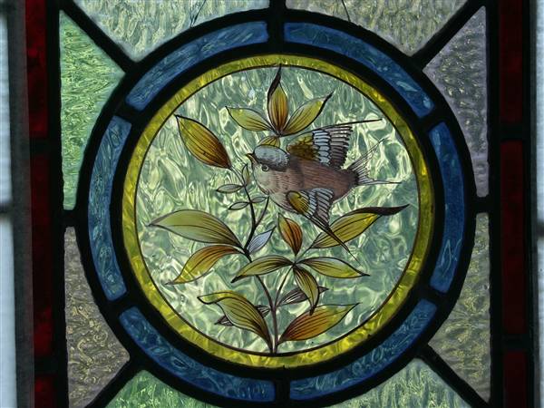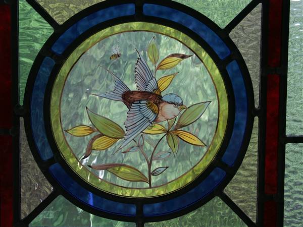 | Flora Jamieson painted this lovely bird to partner pw01. You can see more of Flora's work at http://www.stainedglasswindow.info Ref: pw02 | ||