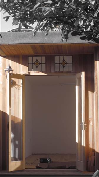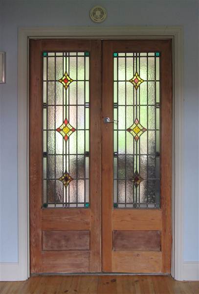 | This beautiful internal door set reused original old panels from the street - see image below. Spare panels were then recycled and used in a designer studio, see end image. Ref: tf11 | ||