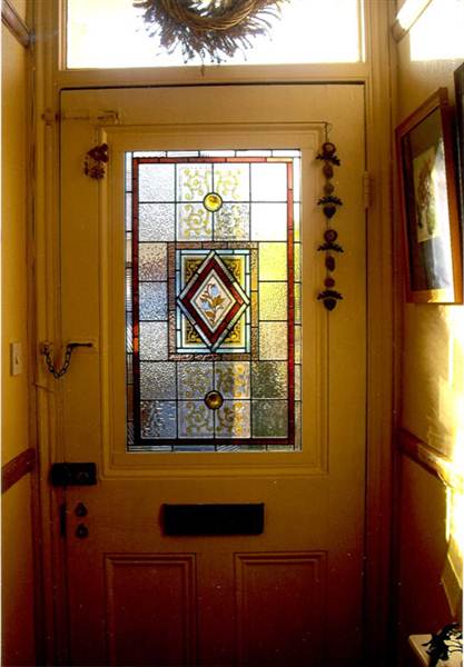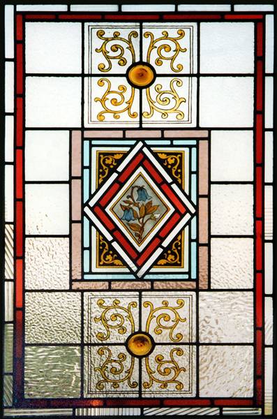 | This panel is an original Victorian panel rebuilt and restored by 3 co-workers. The bluebells in the centre were painted by Flora Jamieson. The panel recently found a new home, although it looks as if it found it's original one! Ref: vg11 | ||
