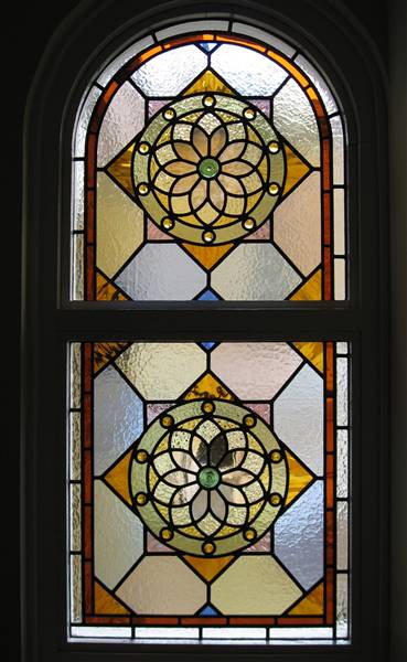 | New work in a classic Victorian style for a fixed sash. The central petals have hand made glass from Hartley Wood. Ref: vg17 | ||