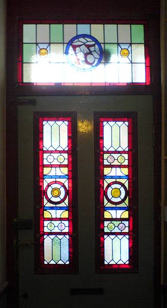 | The street was searched for remaining original glass and an old door set falling to bits was found. The door panels are copies of that original street design, with slight modification. Ref: vg39 | ||